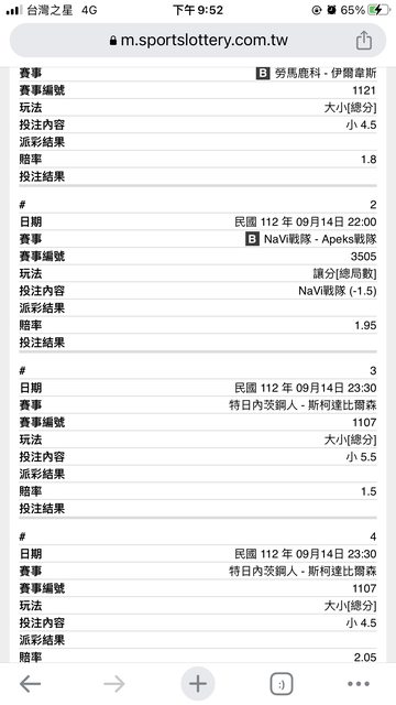 Liiga (1121)Lukko vs Ilves 主推 4.5小 1.8 (X) 3 : 3 ELH (1107)Trinec vs Plzen 主推 5.5小 1.5 (O) 1 : 3 副推 4.5小 2.05(O) CS (3505)NaVi vs Apeks 主推 NaVi -1.5 1.95 (O) Liiga 0/1 ELH 2/2 CS 1/1 祝各位尻尻尻尻尻! ----- Sent from JPTT on my iPhone -- ※ 發信站: 批踢踢實業坊(www.ptt-web.org.tw), 來自: 112.78.70.49 (臺灣) ※ 文章網址: https://www.ptt-web.org.tw/SportLottery/M.1694699866.A.E52