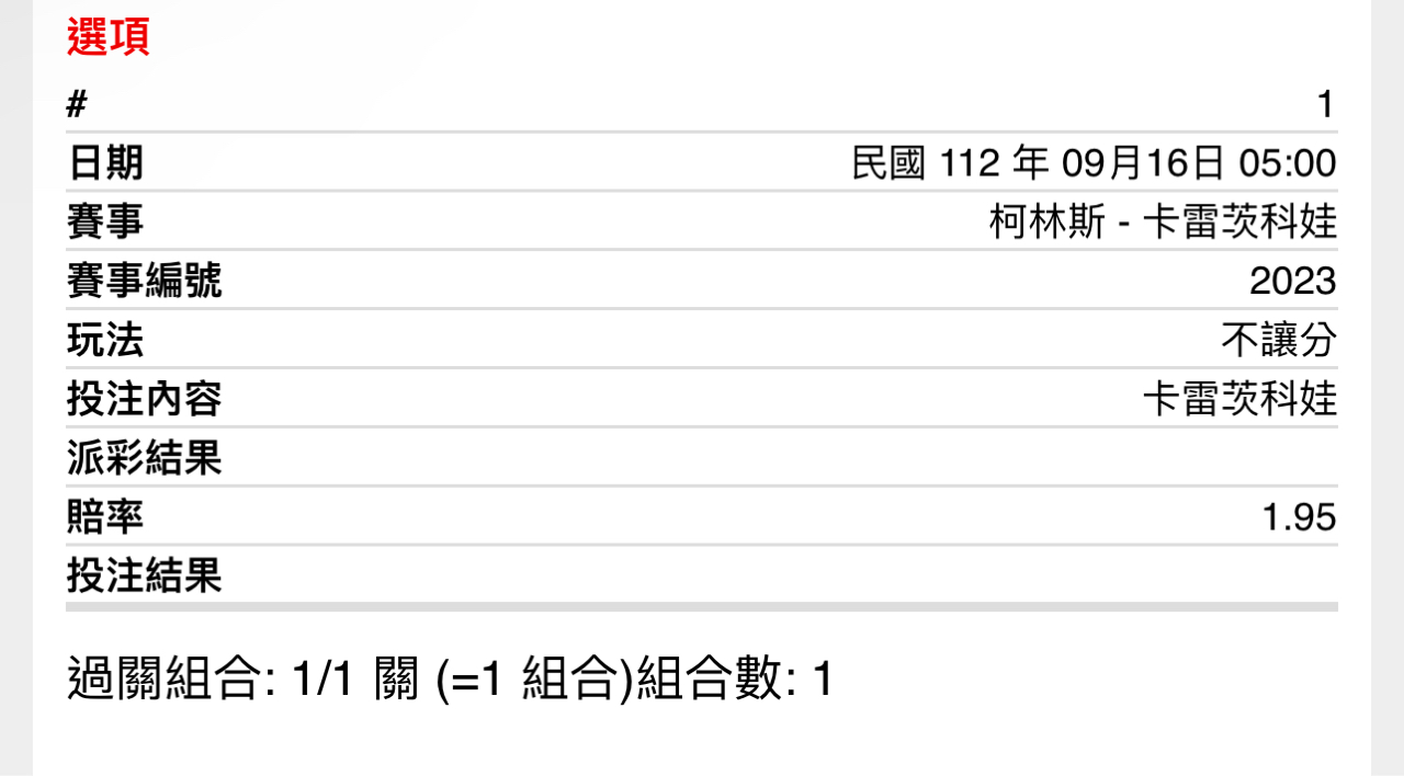 週末女網單場來囉 有買沒買都來開幹 -- ※ 發信站: 批踢踢實業坊(www.ptt-web.org.tw), 來自: 101.136.129.207 (臺灣) ※ 文章網址: https://www.ptt-web.org.tw/SportLottery/M.1694813185.A.6AA