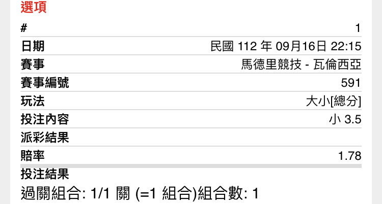 -- ※ 發信站: 批踢踢實業坊(www.ptt-web.org.tw), 來自: 1.200.71.90 (臺灣) ※ 文章網址: https://www.ptt-web.org.tw/SportLottery/M.1694873720.A.568