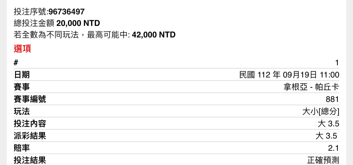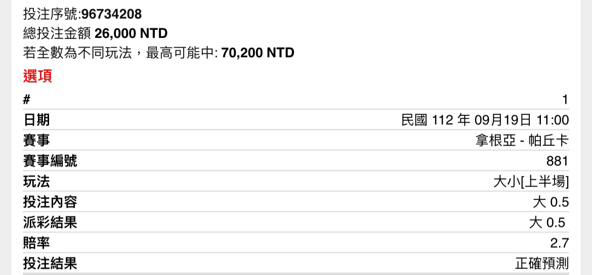 Sam95: 上半1.5大 2.05 2000 203.160.69.194 09/19 11:09