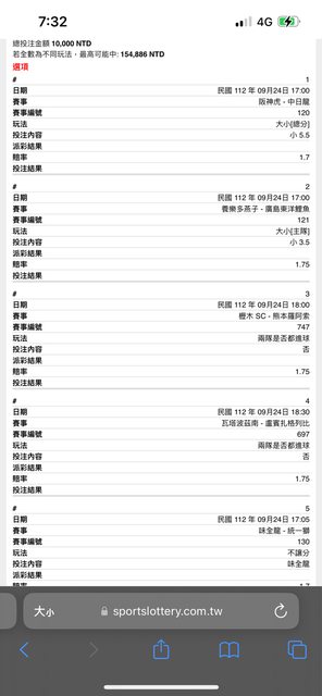 下午有靈感又選五場串關 目前只剩中日阪神場 今天中職大小分不好研究 只好選味全龍也過關 分享給大家 至於事前單我再想一下 因為我不想給自己還有各位壓力 我只是個平凡上班族 對體育樂愛而已 還是謝謝大家集氣 https://i.imgur.com/SCL3q8Z.jpg