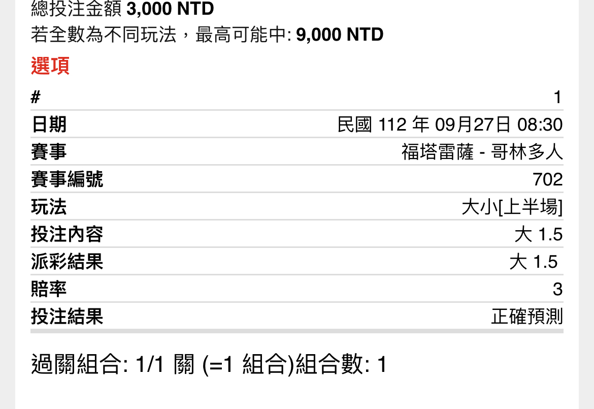 williamken55: 太爽啦,撿到錢欸,這場沒有賠錢了 27.52.70.178 09/27 10:28
