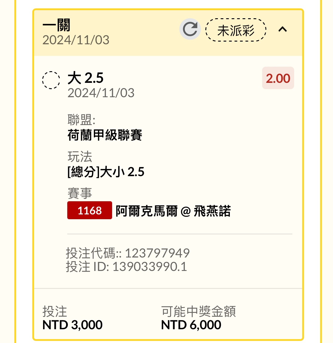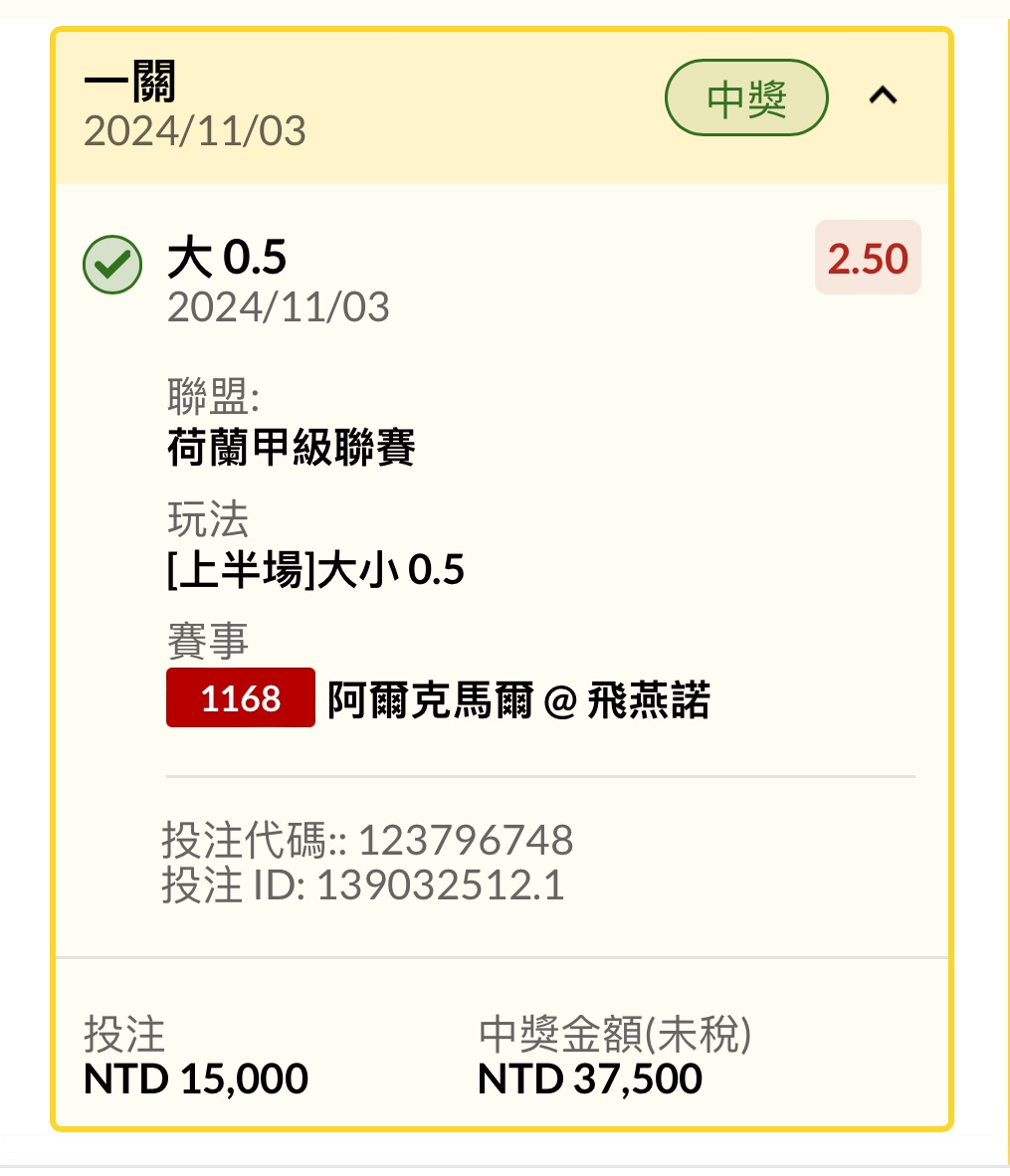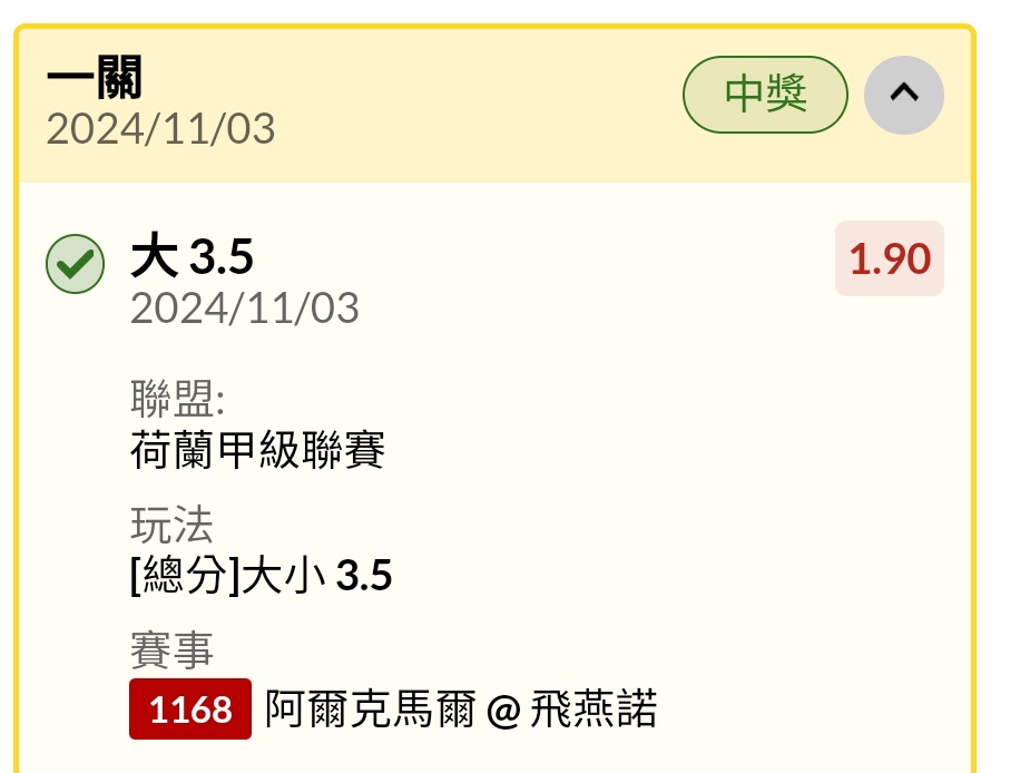 → tieysn: 賽前半阿爾全肥 1.173.54.193 11/03 05:53