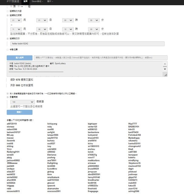 抽 一百位 (此篇為bvbin大十一月第一篇)