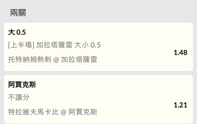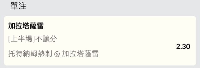 副推Galatasaray 上半不讓 2.30