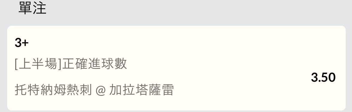 → tieysn: 熱刺破蛋跟下一球賠率應該甜爆 1.173.1.31 11/08 03:16