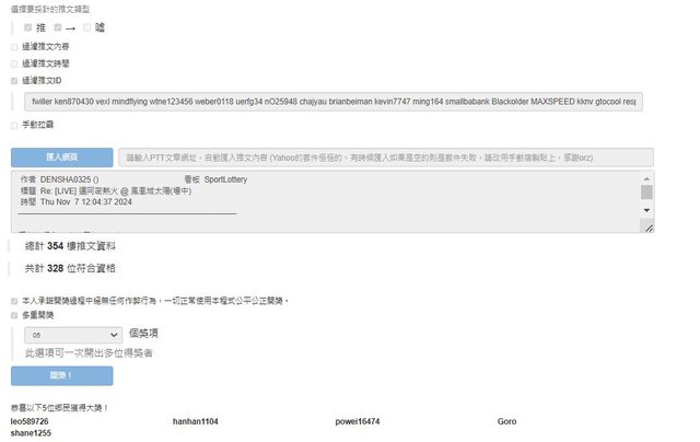 抽 五 位 (過濾不包含律師和bv大得獎者)