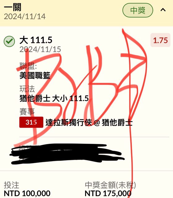 ※ 文章網址: https://www.ptt-web.org.tw/SportLottery/M.1731933802.A.6D9