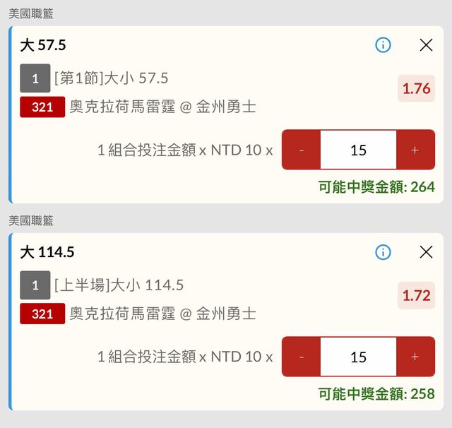 單場 + 場中 ,多按一個0錢錢都下去串關了,等結果,先發文供刪。