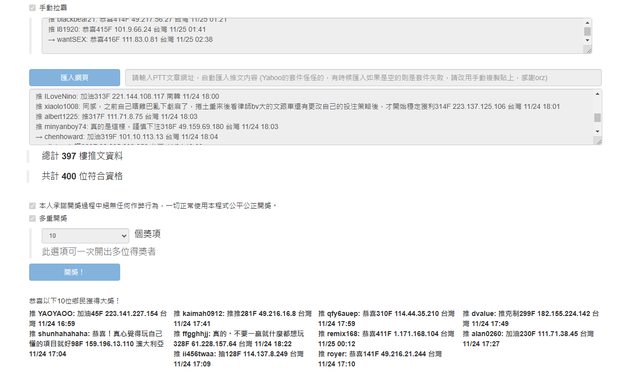 推 PTTaga: 恭喜 101.9.198.163 11/29 23:00
