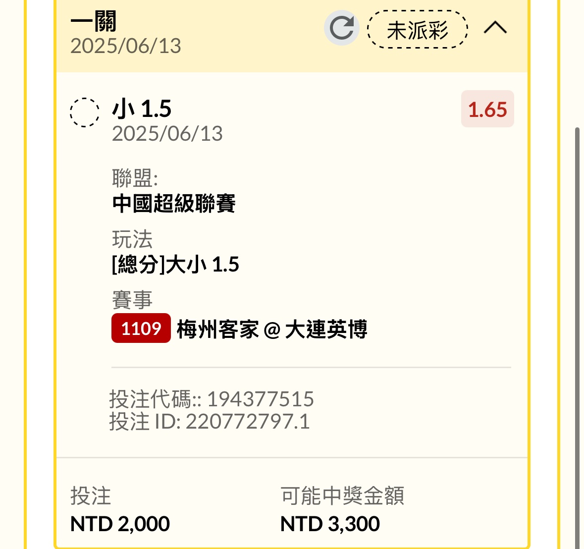 Levi0012: 初盤開3.5踢1顆 61.64.29.20 06/13 21:16