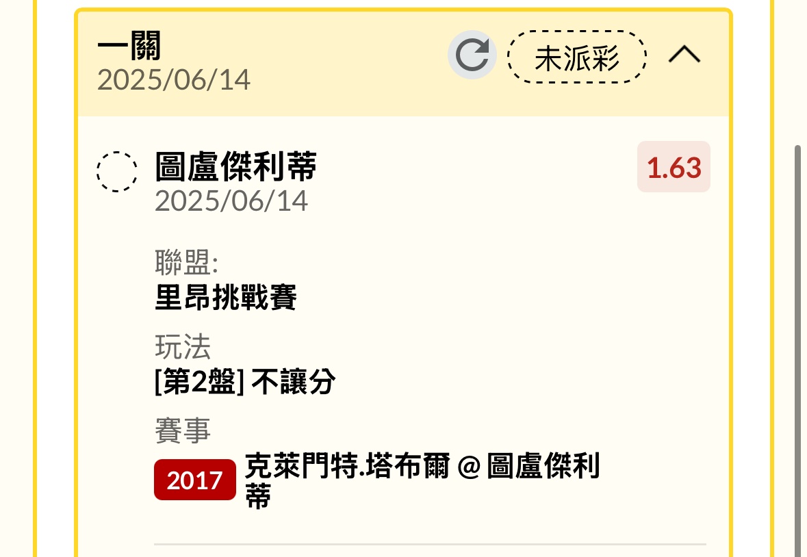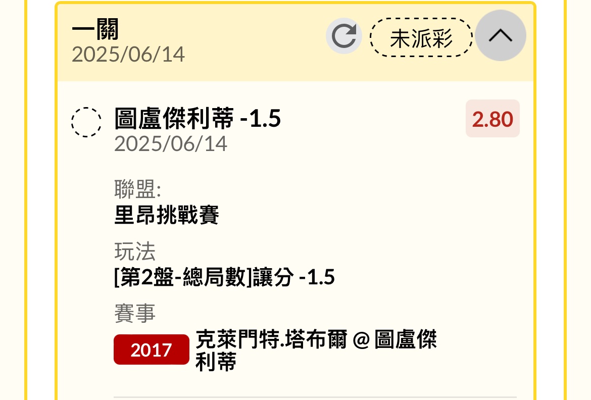 → hebe720330: 結果是客大9.5 36.228.78.140 06/14 22:25