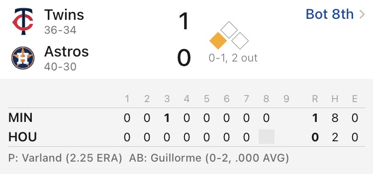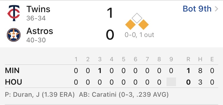 2025 Major League Baseball regular season Daikin Park, Houston, Texas Minnesota Twins 36-34 Houston Astros 40-30 休士頓太空人 勝 1.60 休士頓太空人1分 4.00 -- ※ 發信站: 批踢踢實業坊(www.ptt-web.org.tw), 來自: 42.79.225.232 (臺灣) ※ 文章網址: https://www.ptt-web.org.tw/SportLottery/M.1750010790.A.7CB