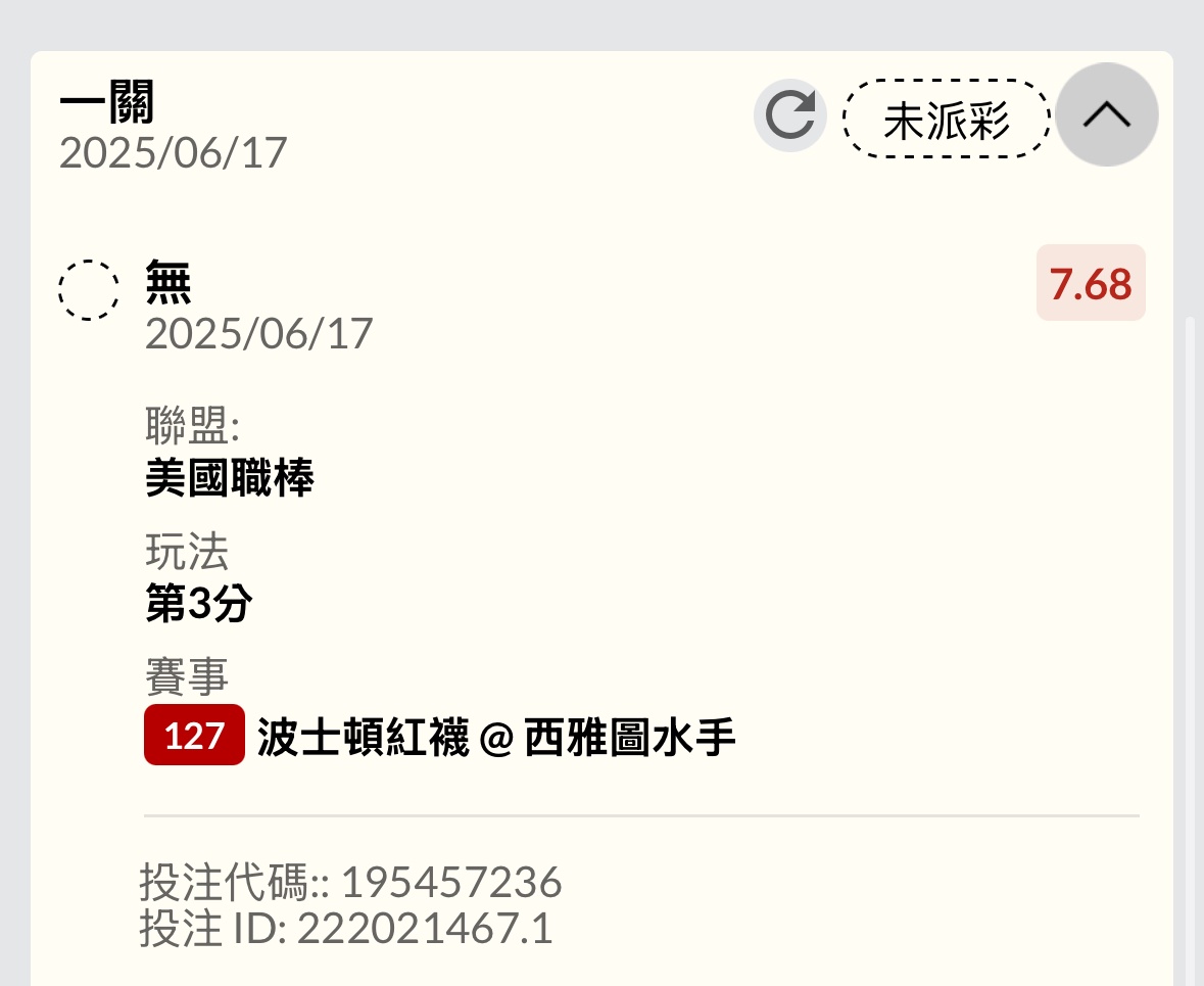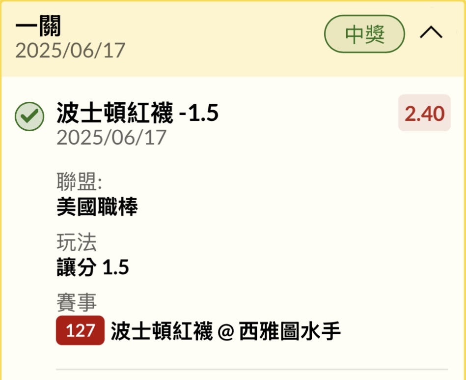 workallday: 單場買高賠紅襪42.78.92.64 06/17 10:09