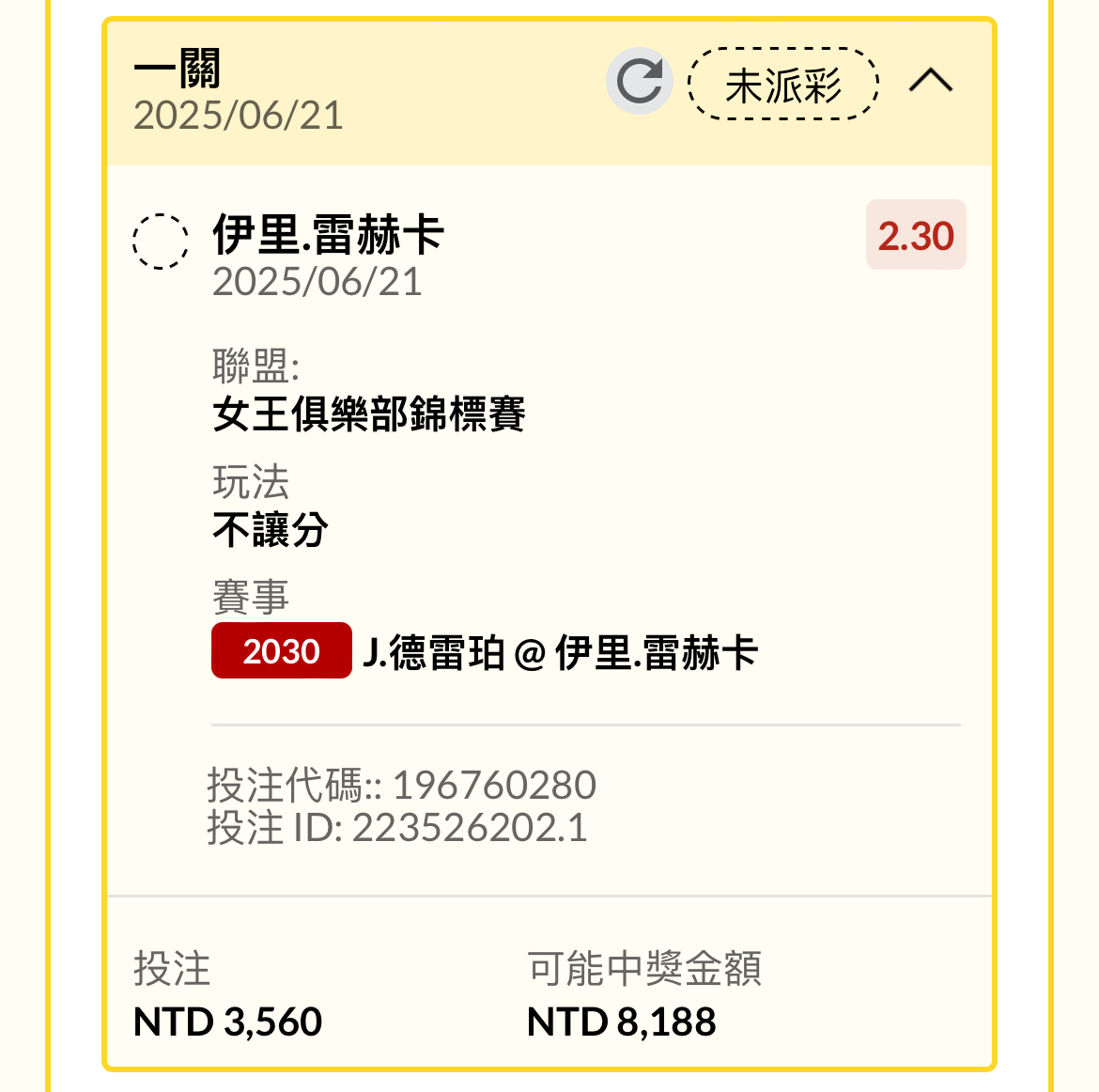 sean910587: 沒車跟,相信自己重注雷賀卡+2.5 0.2k 42.73.150.58 06/21 20:10
