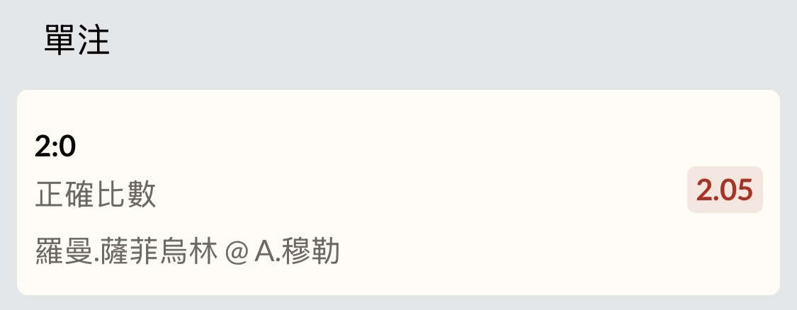 推 sheeran45: 幹第一盤羅曼-1.5還有救嗎 27.242.66.19 06/23 18:43