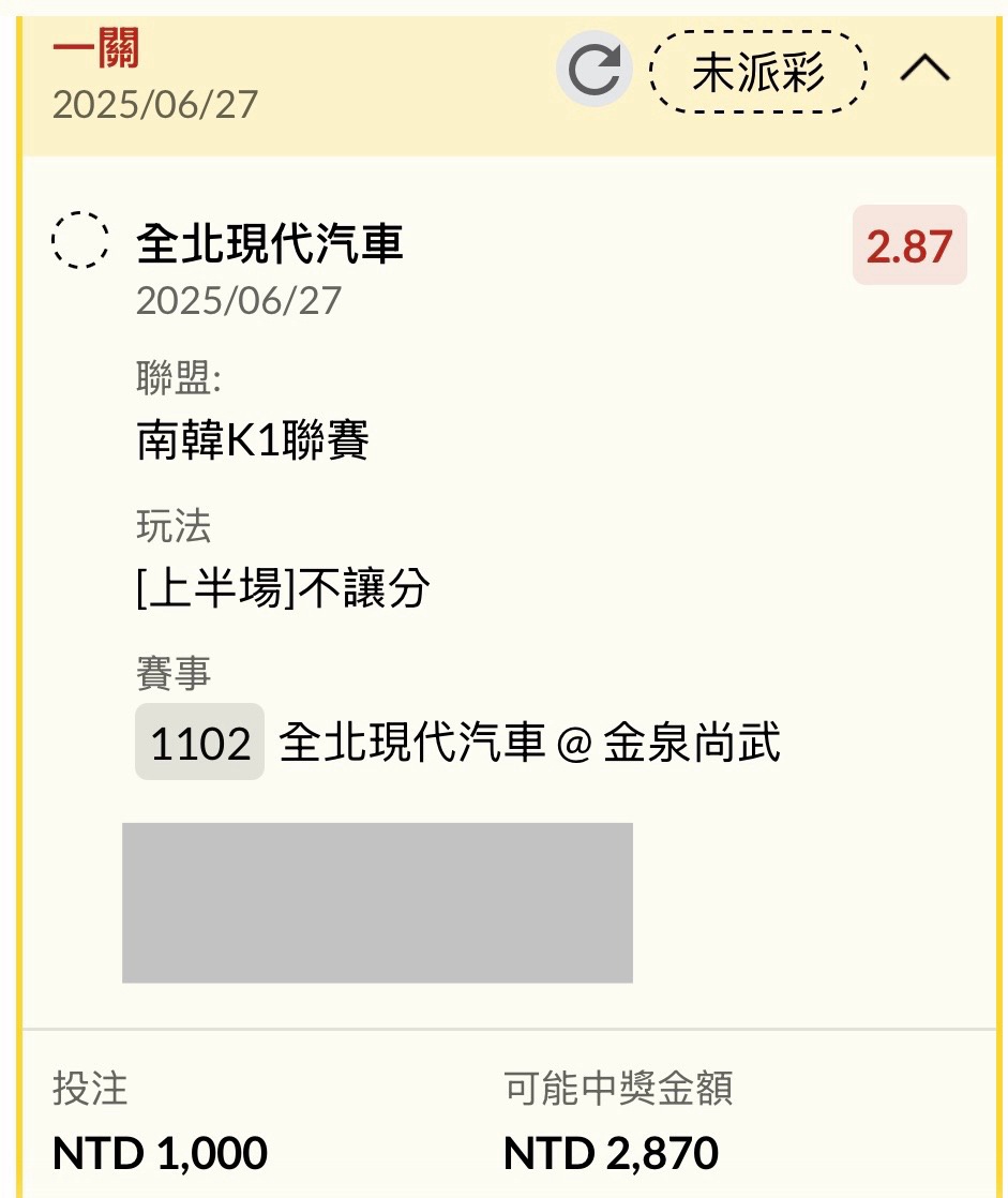 推 z954008: 說個笑話全北帶隊半場破蛋開1.6多27.53.25.116 06/27 18:56