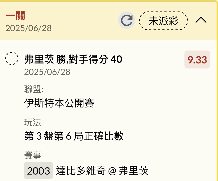 → z954008: 不一定啊 如果退賽 三盤會*1 1.162.97.238 06/28 02:46