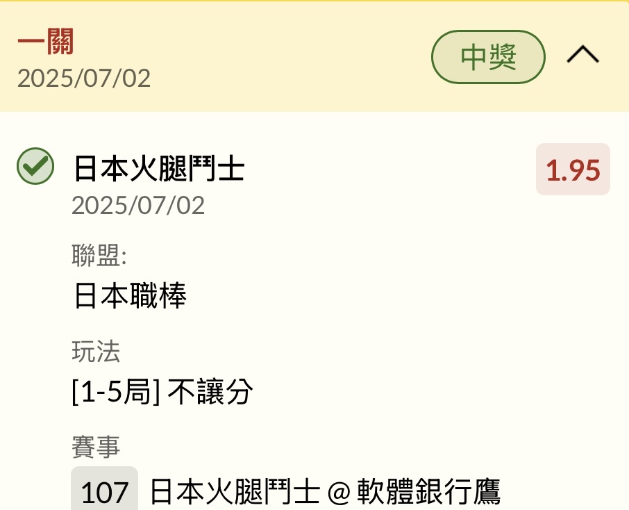 推 instill8: 昨天差火腿2.5客大過四關 浪費其他兩關 219.71.100.207 07/02 18:03