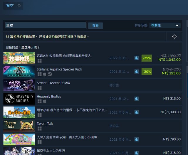 推 njames: steam搜尋就真的做的不好啊.... 08/31 20:50