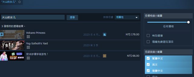 → comodada: 都用英文搜就沒這個問題了 只是steam會依語言縮小範圍 08/31 17:23