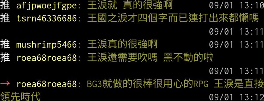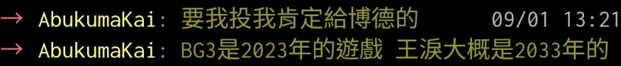 → VISprout: 沒BG3和王淚,那今年的GOTY可以是霍格華茲,其實我覺得 09/06 16:28