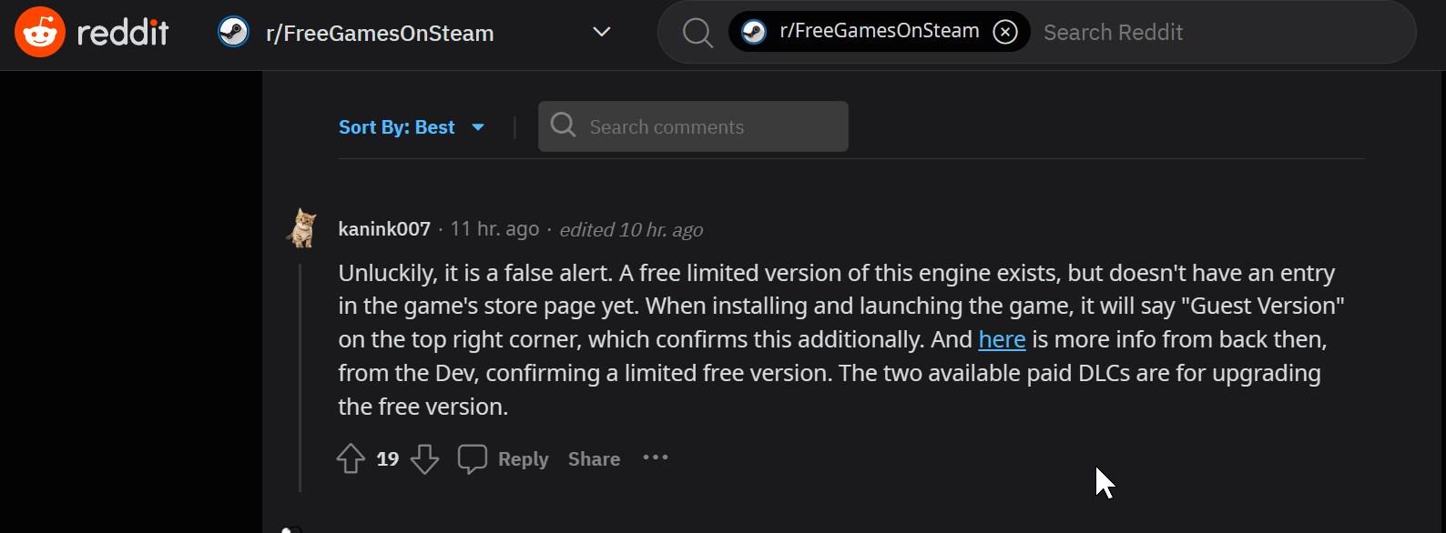 → efreet: 因為實際上是免費沒錯,開發商有回應是STEAM頁面顯示錯誤 09/08 23:43