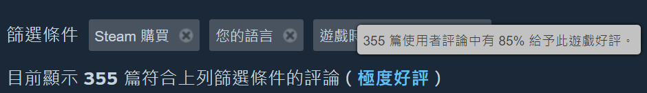 推 shuanpaopao: 我把條件設定為「steam限定」「簡中語系」「玩2小時 09/10 09:10