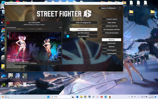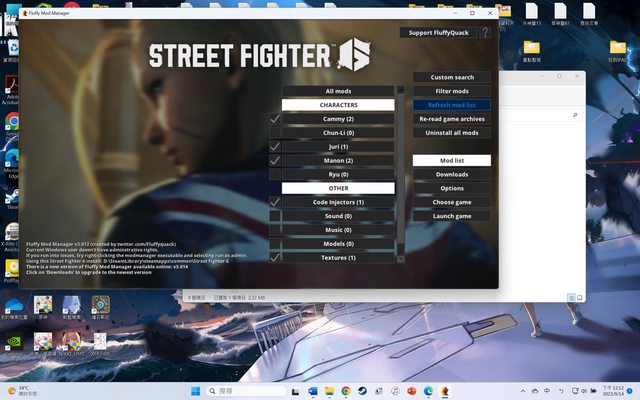 我以為這是要等mod作者更新,可是之前看嬌兔玩,他的cammy還是馬尾,而且juri也是正常