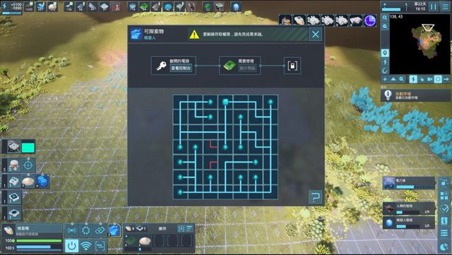 單程讓礦工自己來回距離變很長,同時還要牽超長現象的電網出去,要如何有效率的開採新礦並運送回基地就是遊戲的精髓了