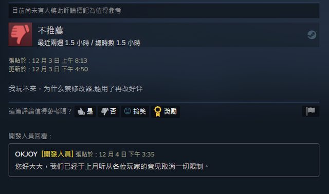 → kizajan: 修改會不會降低遊戲體驗 我覺得是要玩家自己來評價 12/07 13:06