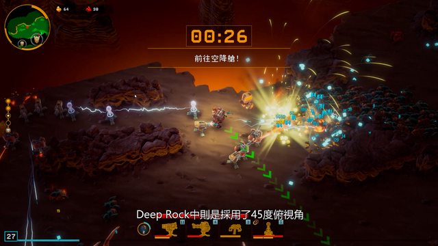 同樣也採用了彈幕射擊的方式,但與吸血鬼倖存者不同的是,Deep Rock中則是採用了45