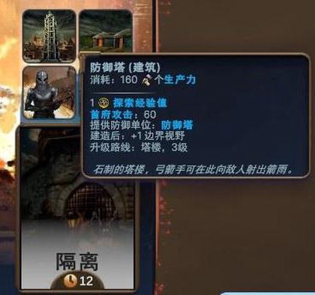 另一個就是這段時間航海科技完全消失了XD 取而代之是有專屬的防禦塔以及城牆建築 城鎮衛兵直接晉升成持弩衛兵
