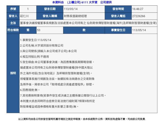 推 pansquarl: 大宇賣了這兩個 IP 後還剩什麼 05/14 18:56