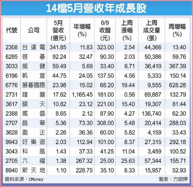標題[新聞] 行情還有戲!14檔強勢股5月營收靚