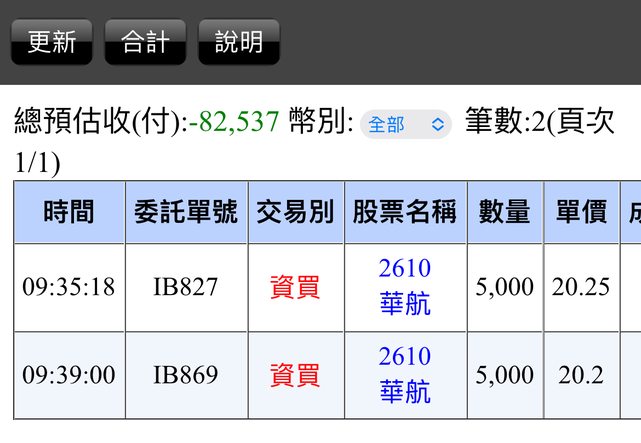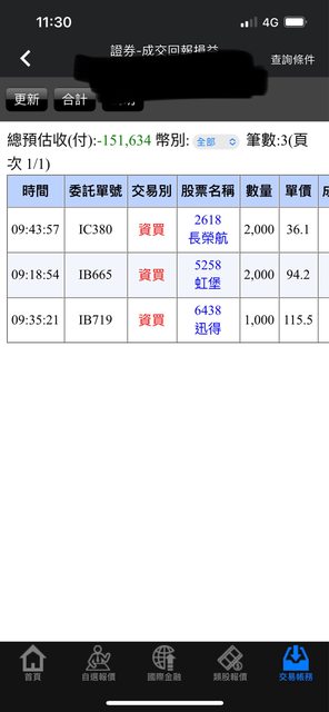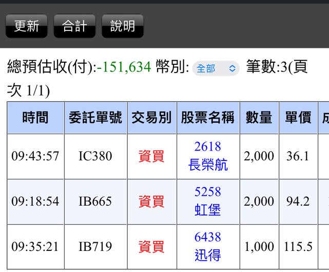 : 以下是今天買進對帳單