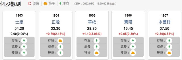 雙箭頭華紙(1905)、永豐餘(1907)聯手大漲逾3%領軍,正隆(1904)、榮成(1909)