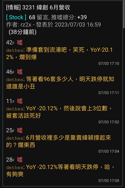 推 stayawesome : 利多出盡 明天跌停 07/03 19:48