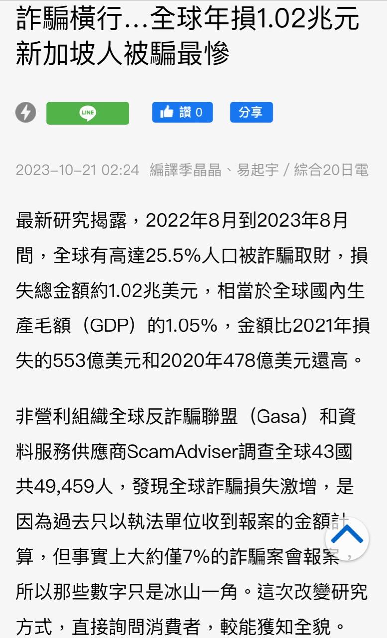 → boards : 詐騙橫行…全球年損1.02兆元 04/25 09:17