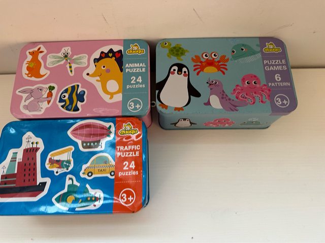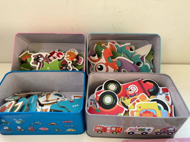 3.鐵盒拼圖 有2片/4~6片合成一個圖案 (有1~2塊缺片) 4盒$ 150