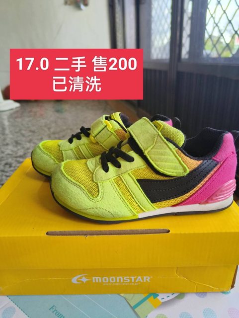 以下為鞋子區 一雙全新的售500元 二手的皆為200元 二手的一次帶3雙500元 鞋1. moonstar 17號