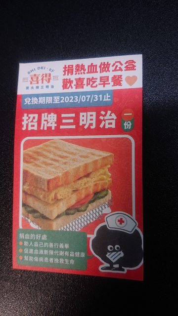 物品名稱:喜得招牌三明治一份