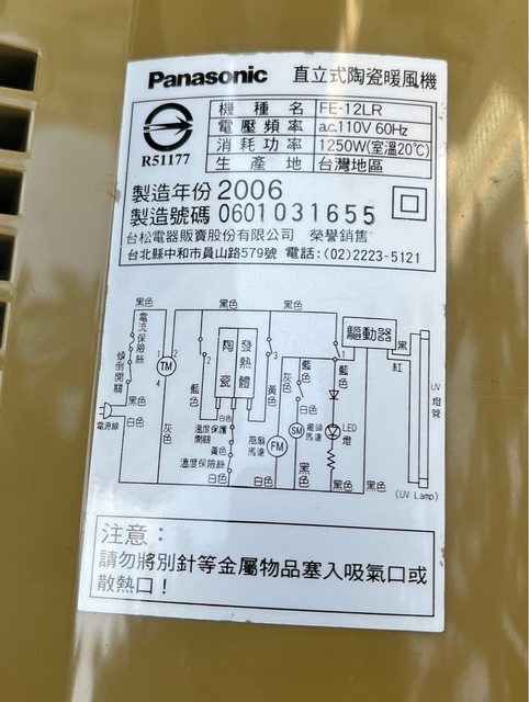 [交易] 北區/國際牌 FE-12LR 光觸媒電熱器
