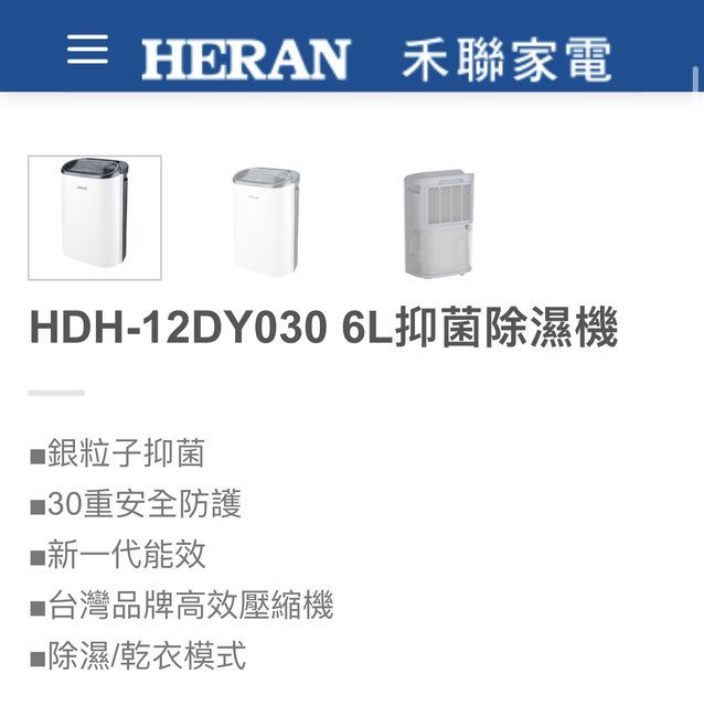 HERAN 禾聯 新一級能效6公升抑菌王除濕機