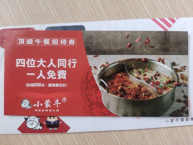 物品A:小蒙牛四人同行一人免費午餐招待券 期限7/31