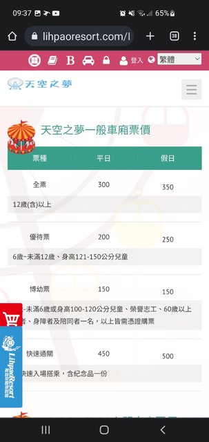 售麗寶樂園天空之夢摩天輪門票1張