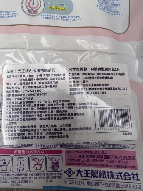物品名稱:1包即期寶寶麵、三片大王境內版快肌適褲型尿布M號