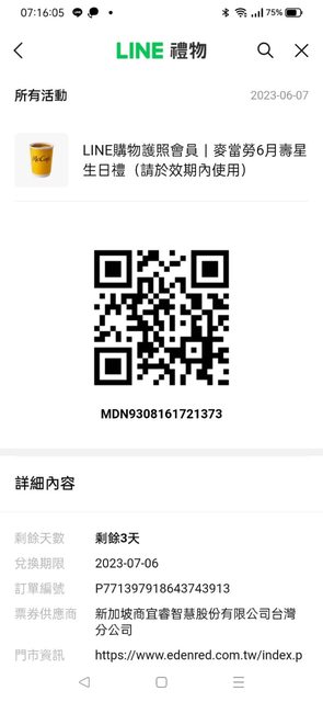 物品說明:line生日禮,7/6最後一天兌換倒數不到2小時
