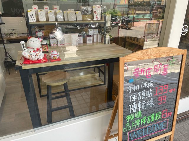 開幕當天蒞臨的客人享有免費更換保護貼的優惠,並且贈送一條手機充電傳輸線。
