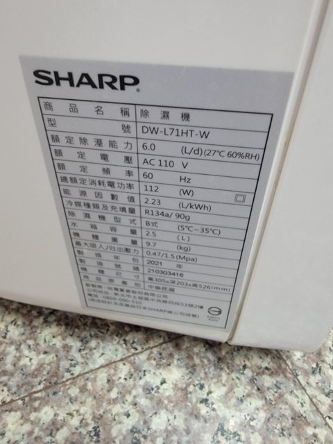 物品A:夏普除濕機 DW-L71HT-W 目前洽中